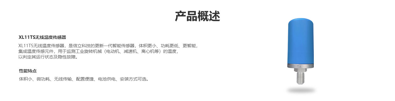XL11TS無線溫度傳感器,是信立科技的更新一代智能傳感器,體積更小、功耗更低,更智能。集成溫度傳感元件,用于監(jiān)測工業(yè)旋轉(zhuǎn)機械(電動機,減速機,離心機等)的溫度以判定其運行狀態(tài)及隱性故障。