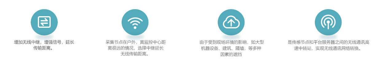 選擇LoRa,433MHz等傳輸方式時,采集節點在戶外,離監控中心距離很遠的情況,選擇中繼延長無線傳輸距離。 在石油、石化、冶金等工廠環境復雜,有巨型的機器設備等遮擋的情況,增加無線中繼,增強信號,延長傳輸距離。 在醫藥、醫療實驗室,隔間太多,影響無線傳輸。增加中繼,增強信號,延長傳輸距離。