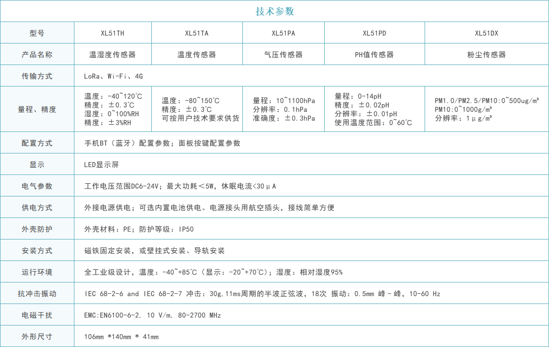 XL51PA無線氣壓傳感器,可采集大氣壓力數值,集成壓力傳感元件、信號處理、無線傳輸于一體。帶顯示屏和按鍵,實時顯示數據,現場可通過APP和按鍵配置參數,支持多種通信協議。