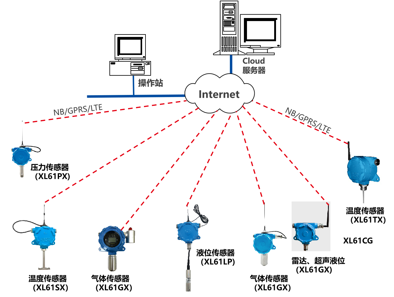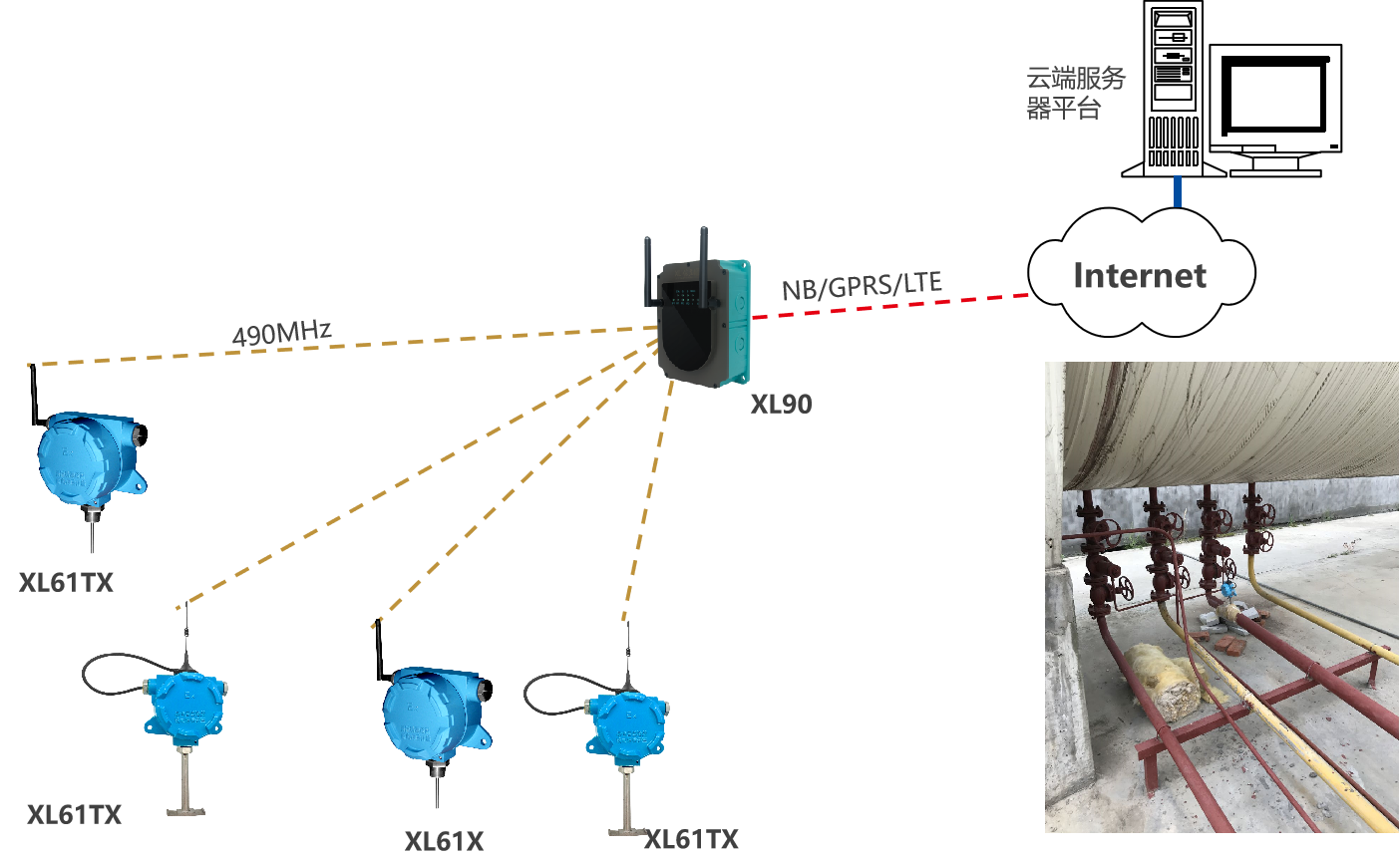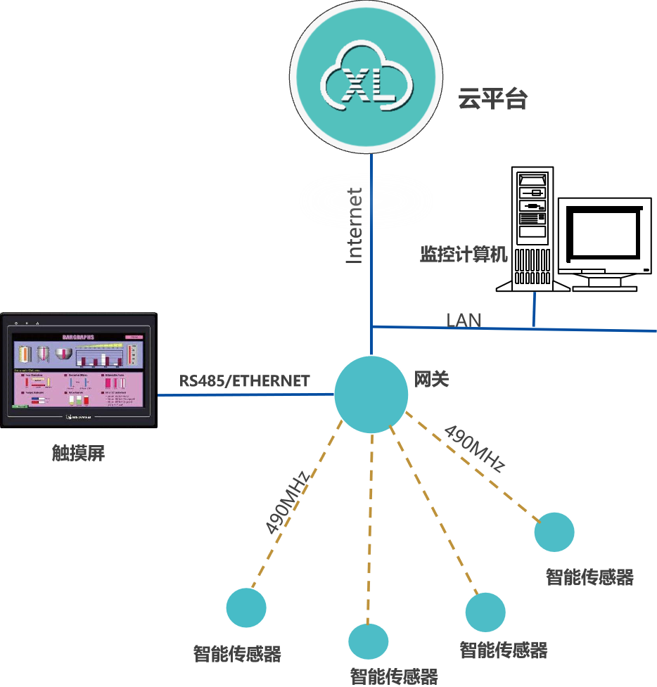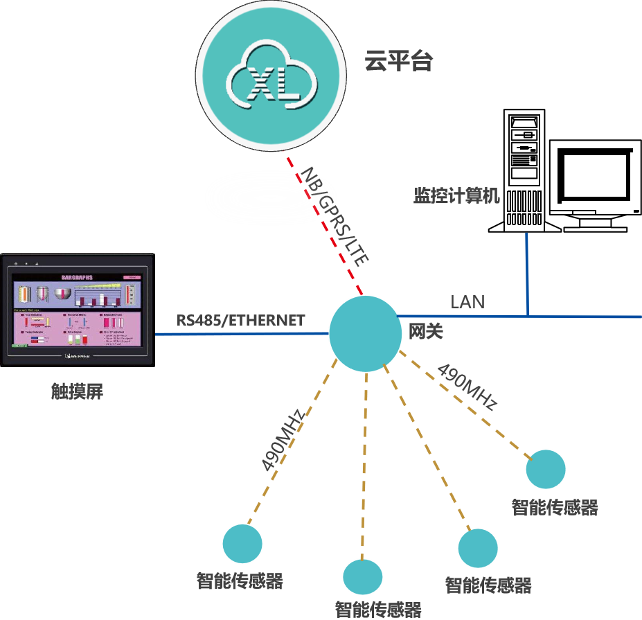 XL90,將數據上傳給企業內部的多個系統軟件平臺;通過LTE(4g)/NB/GPRS將數據上傳至云服務器