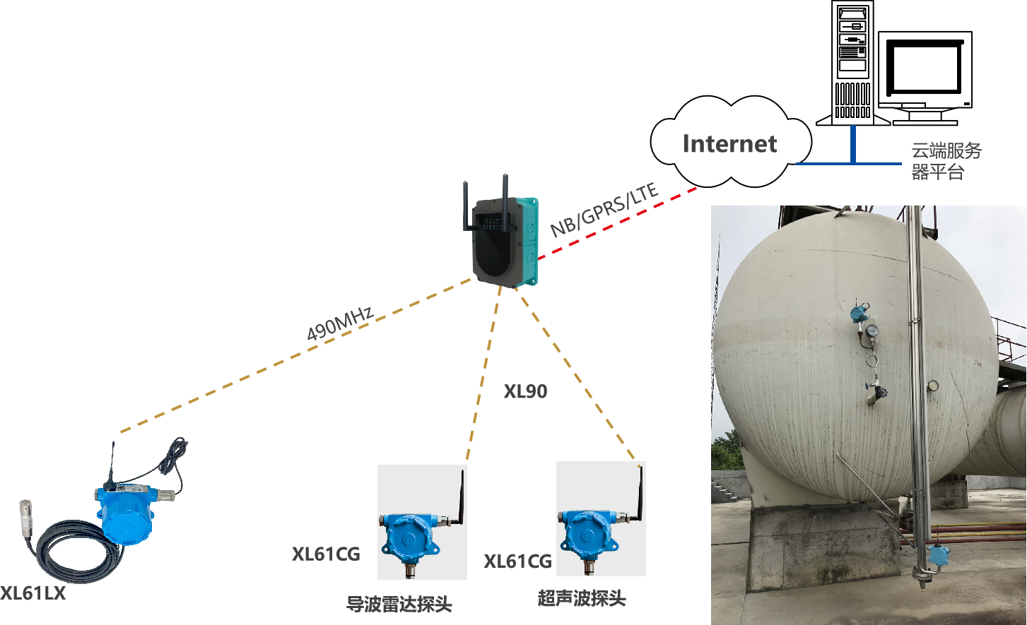 適用于航空燃油、汽油、溶劑油、異辛烷、混合芳烴、異丁烷、液化石油氣、天燃氣等等多種化學物品的儲罐、倉儲等安全狀況監控