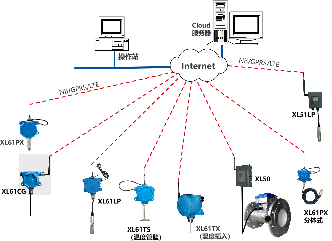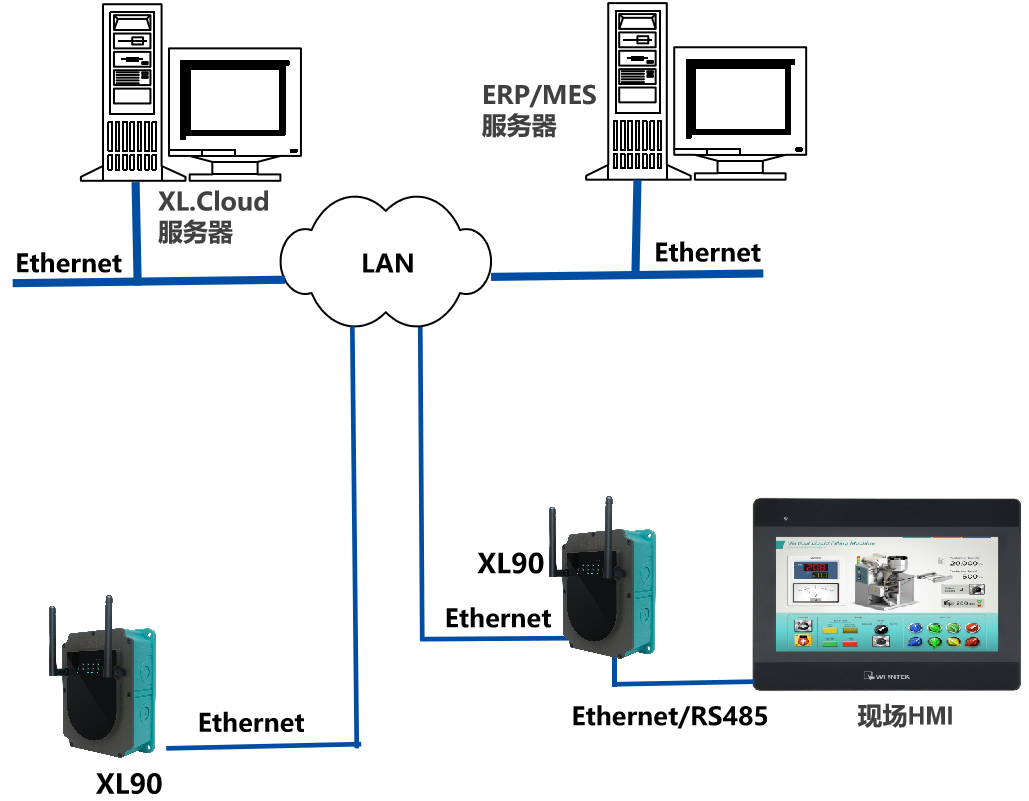 XL90,將數(shù)據(jù)上傳給企業(yè)內(nèi)部的多個(gè)系統(tǒng)軟件平臺(tái);通過LTE(4g)/NB/GPRS將數(shù)據(jù)上傳至云服務(wù)器