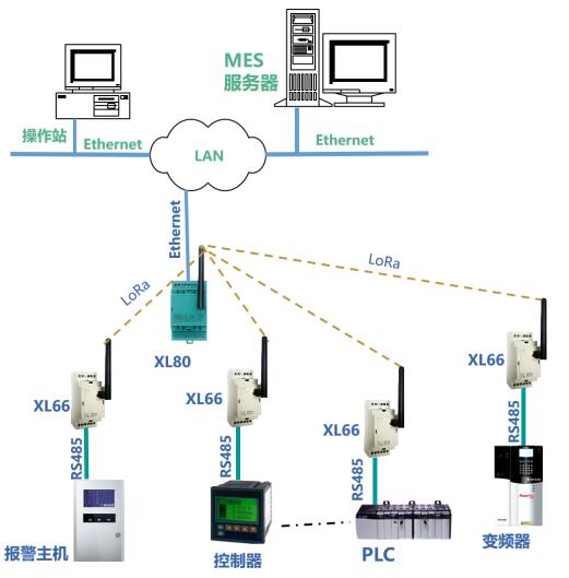 XL80主機,通過LoRa無線接口,從XL66無線讀取設備的運行數據,通信協議轉換處理后,通過Ethernet,轉發數據至MES。