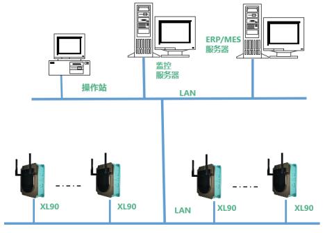 根據工廠局域網的分布,設計網關的安裝點,以XL90網關為通信中樞,構建覆蓋數字化系統區域的工廠物聯網。