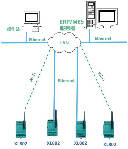 XL80通信主機通過RS485通訊口讀取空壓機的運行參數??赏ㄟ^Ethernet / Wi-Fi接入局域網,將數據推送至監控平臺;或通過LoRa無線傳輸至XL90網關,經由XL90網關轉發數據至監控平臺。