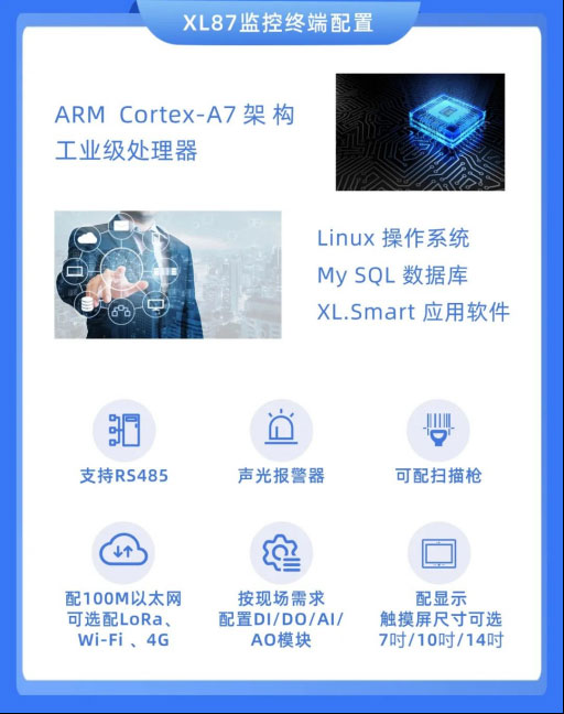 XL87監控終端,是構建工廠數字化的節點裝置,旨在實現機器設備和生產管理的智能化升級,朝向工業4.0邁進。