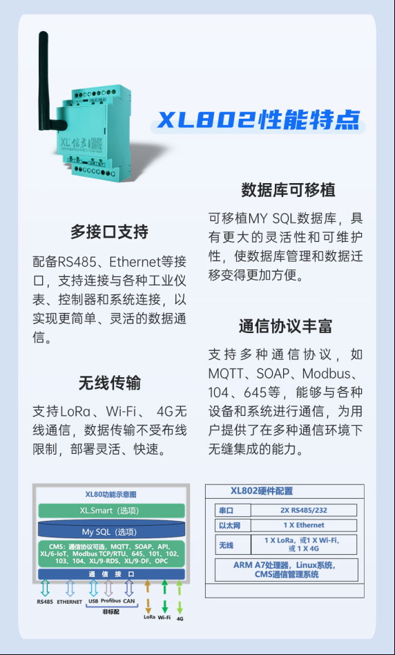 XL802通信主機(jī)可通過Ethernet、Wi-Fi將數(shù)據(jù)推送至監(jiān)控平臺(tái),或通過4G直接將數(shù)據(jù)上傳至云平臺(tái)。