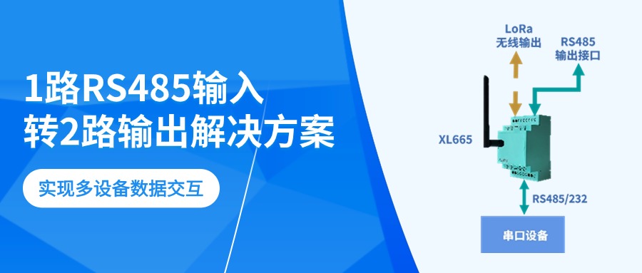 選擇XL665無(wú)線轉(zhuǎn)換器,將1路RS485信號(hào)轉(zhuǎn)換成2路輸出信號(hào)。