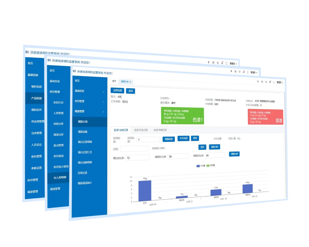 l 平臺(tái)自動(dòng)記錄、生成用戶(hù)所需的各類(lèi)報(bào)表,如調(diào)漆成品統(tǒng)計(jì)、庫(kù)存余料盤(pán)點(diǎn)等報(bào)表;
