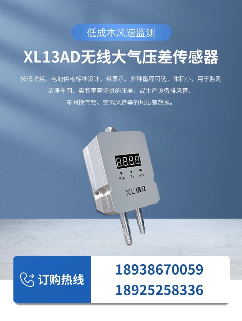 選用XL13AD無線壓差傳感器,部署于潔凈區(qū)邊界、動態(tài)風(fēng)險點等關(guān)鍵點,實時監(jiān)測壓差,并聯(lián)動回風(fēng)管或排風(fēng)管上的電動調(diào)節(jié)閥,當(dāng)壓差異常時自動調(diào)節(jié)送/排風(fēng)量。